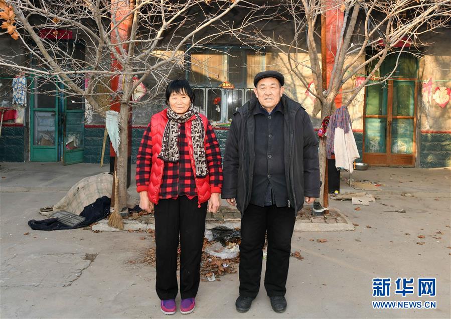 12月20日,青城鎮(zhèn)菜園村村民韓貽崗(右)和愛人在舊居院內(nèi)拍照紀念。 新華社記者 朱崢攝