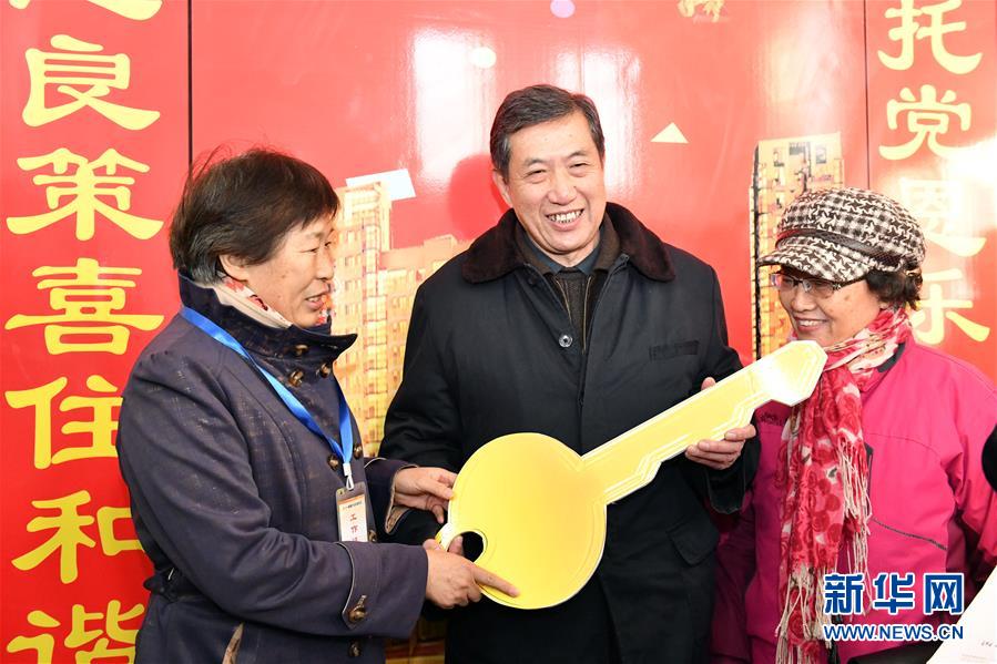 12月20日,回遷居民遲明德(中)成為和諧佳苑小區(qū)第一位辦理回遷入住的居民。 當(dāng)日,濟(jì)南市槐蔭區(qū)經(jīng)十一路棚戶區(qū)改造項(xiàng)目——和諧佳苑小區(qū)正式交付居民回遷安居。作為濟(jì)南市槐蔭區(qū)頭號民生工程,本項(xiàng)目共17棟安置樓,實(shí)現(xiàn)棚戶區(qū)居民“出棚進(jìn)樓”,改善安居環(huán)境。 新華社記者 郭緒雷 攝