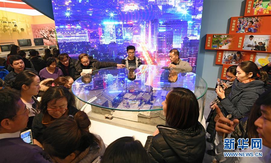 12月21日,觀(guān)眾在觀(guān)看老北京四合院微縮模型。