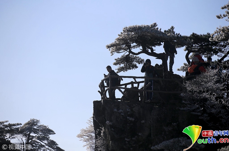 4月15日,安徽黃山出現(xiàn)了四月陽春罕見的霧凇奇觀。圖片作者:施廣德/視覺中國