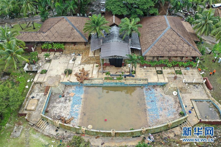 這是12月25日航拍的遭海嘯襲擊后的印度尼西亞萬丹省丹戎勒松度假村。印度尼西亞抗災(zāi)署25日通報說,印尼西部巽他海峽22日晚發(fā)生的海嘯已造成429人遇難,另有超過1.6萬人撤離。搜救工作正在緊張進(jìn)行。新華社記者 杜宇 攝