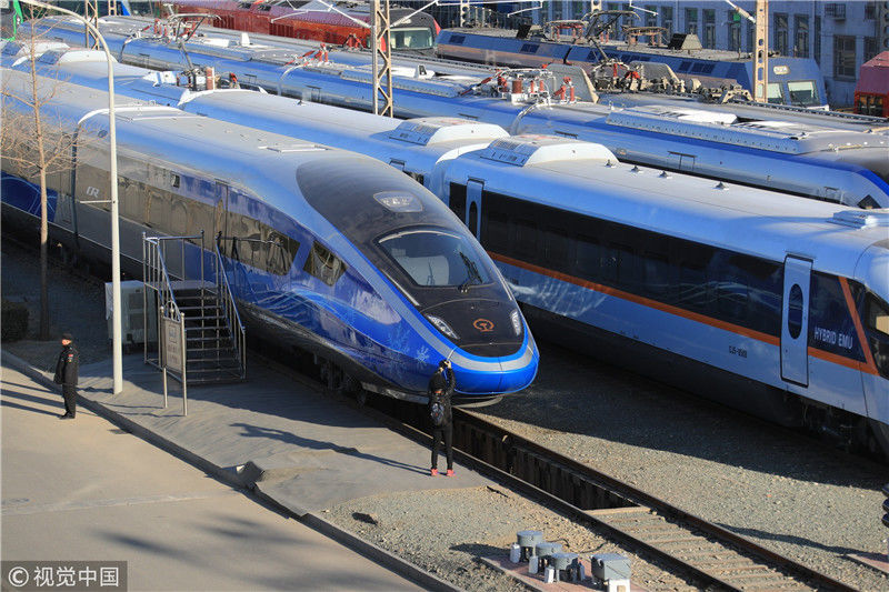 2018年12月24日上午,中國鐵路科技創(chuàng)新成就展在北京國家鐵道試驗中心開幕,一大批中國自主研發(fā)的先進鐵路技術裝備集中展出,多款復興號新型動車組首次公開亮相。
