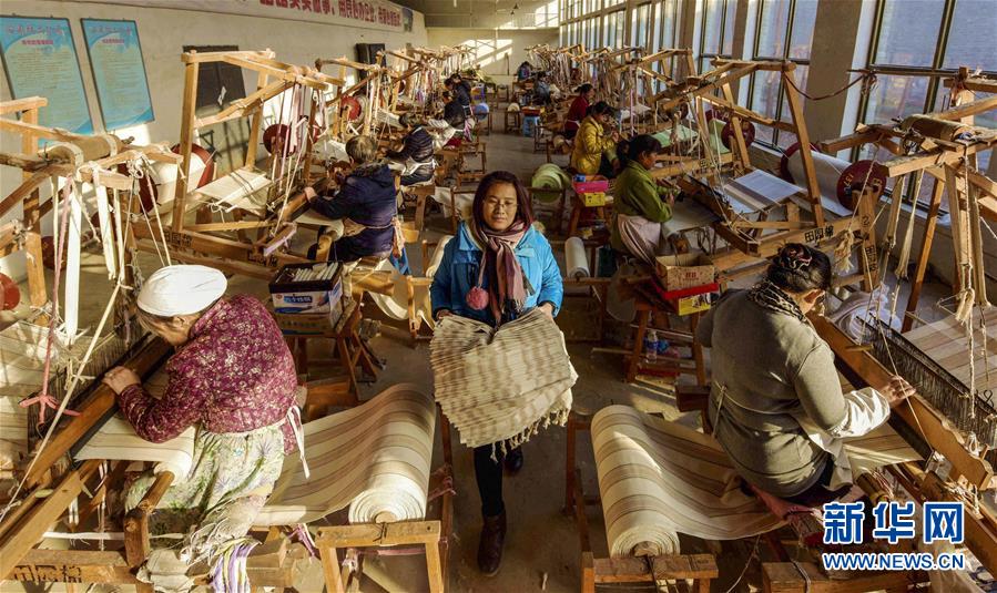 12月25日,在衡水市冀州區(qū)一家老粗布生產企業(yè),田園棉手織粗布傳承人(左)在指導村民織布。 2018年以來,河北省衡水市冀州區(qū)依托當?shù)氐氖〖壏沁z田園棉手織粗布技藝資源,采取“非遺+扶貧”的模式,通過非遺傳承人開展技能培訓、老師傅傳幫帶等,讓貧困村民在傳承非遺文化的同時學習傳統(tǒng)技藝,助力脫貧致富。 新華社記者 李曉果 攝