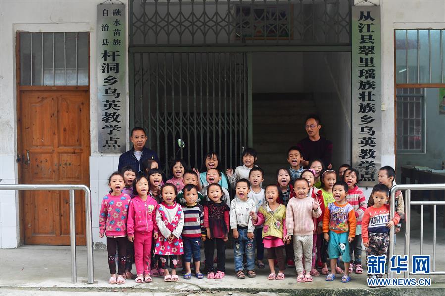 烏英教學(xué)點(diǎn)“一??鐑墒^(qū)”,目前有廣西籍學(xué)生18名,貴州籍學(xué)生9名,廣西貴州籍老師各1名。 烏英苗寨位于黔桂交界的大苗山深處,共有140戶,其中100戶屬廣西柳州市融水苗族自治縣桿洞鄉(xiāng)黨鳩村,40戶屬貴州省從江縣翠里瑤族壯族鄉(xiāng)南岑村。由于地處偏遠(yuǎn),山多地少,經(jīng)濟(jì)發(fā)展緩慢,目前整個(gè)苗寨還有76戶是貧困戶。 面對(duì)艱巨的脫貧任務(wù),當(dāng)?shù)攸h委政府在努力改善烏英苗寨公共基礎(chǔ)設(shè)施的同時(shí),因地制宜,帶動(dòng)群眾積極發(fā)展特色產(chǎn)業(yè)。從2017年11月至今的一年多時(shí)間,這里發(fā)生了很大改變:10戶村民新建了木樓,120多戶完成“三改”(改廁改廚改圈),1名貧困考生考上大學(xué),1戶購買新汽車,4對(duì)新人舉行了婚禮,寬帶網(wǎng)絡(luò)開始進(jìn)入貧困戶家庭,苗寨修建了新的辦公大樓和戲臺(tái),安裝了4盞太陽能路燈,購買了40多個(gè)新蘆笙,水果種植專業(yè)合作社2018年種植的百香果也開始有所收獲,18戶貧困戶進(jìn)入脫貧公示階段…… 烏英苗寨600多名黔桂苗族群眾,正在用勤勞的手,拔窮根摘窮帽,一起創(chuàng)造美好的明天。