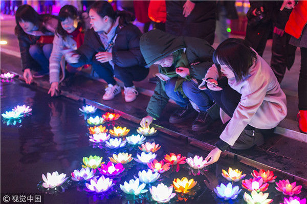 2017年12月31日,南京銀杏湖樂園跨年夜,燈光璀璨。