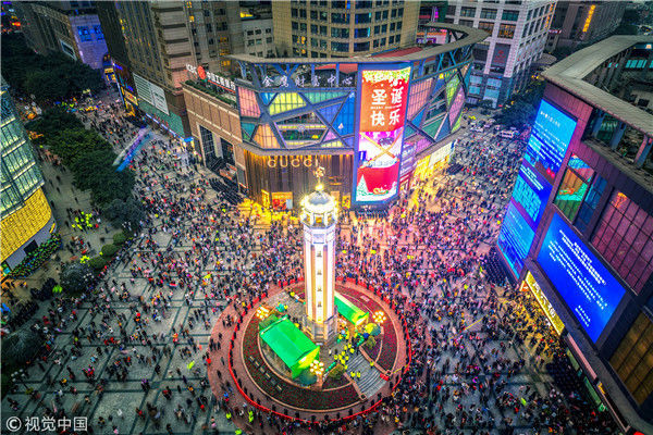2017年12月31日晚,重慶市渝中解放碑步行街,10萬人齊聚解放碑,歡歡喜喜度過2018跨年夜。每年重慶的跨年夜,人們都會(huì)齊聚解放碑,縱觀國(guó)內(nèi)大城市的跨年夜,極少有哪座城市有重慶這么熱鬧,這已經(jīng)成為中國(guó)城市中最有特色的跨年活動(dòng)之一。解放碑作為重慶最具標(biāo)志性的建筑之一,可謂意義非凡。雖然周邊建筑越來越高,使相形之下的解放碑顯得越來越小,但依然撼動(dòng)不了解放碑在重慶人民心畝中的地位。