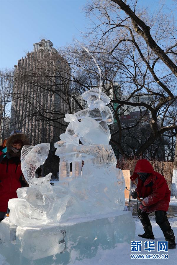 12月27日,選手們?cè)诒荣愔型晟票褡髌贰?當(dāng)日,第十六屆黑龍江省大學(xué)生冰雕藝術(shù)設(shè)計(jì)創(chuàng)作大賽在哈爾濱兆麟公園落下帷幕,全省高校共有99支隊(duì)伍參賽。 新華社記者曹霽陽(yáng)攝