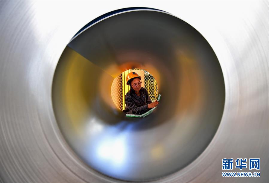 這是唐山市一家汽車鋼板生產(chǎn)企業(yè)的工人在給剛生產(chǎn)出的鋼板粘貼批號標簽(4月25日攝)。