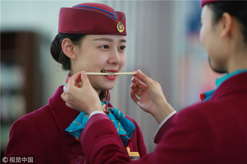 成都“動姐”叼筷子練微笑 禮儀培訓(xùn)備戰(zhàn)成雅鐵路