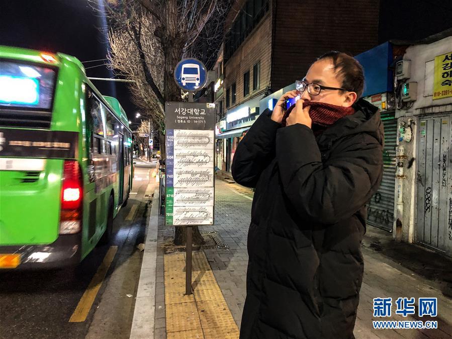 12月28日,一名行人在韓國(guó)首爾西江大學(xué)附近的一個(gè)公交站打電話。據(jù)韓國(guó)氣象部門28日消息,全國(guó)各地當(dāng)天迎來強(qiáng)寒潮,首爾地區(qū)體感溫度達(dá)零下19.3攝氏度,中部地區(qū)和南部地區(qū)已發(fā)布低溫預(yù)警。新華社記者 王婧嬙 攝