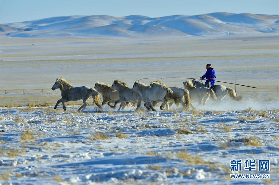 1月8日,牧民進(jìn)行套馬表演。 時(shí)下正值草原冬季旅游旺季,內(nèi)蒙古自治區(qū)西烏珠穆沁旗的牧民們在雪原上一展身手,為游客展現(xiàn)獨(dú)特的民族風(fēng)情。 新華社記者 鄒予 攝