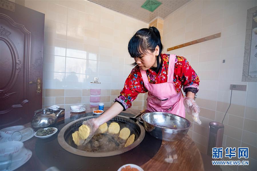 1月10日,在舒蘭市二合屯,農(nóng)家樂(lè)老板楊會(huì)為游客準(zhǔn)備東北特色菜肴。 新華社記者張楠攝