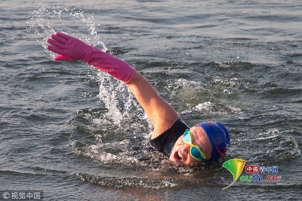 2019年1月10日至11日,長(zhǎng)春,65歲的張敏石是一位冬泳愛(ài)好者,他經(jīng)常一邊冬泳一邊吟詩(shī)或者唱戲。他自稱(chēng)曾患上腦梗腦萎縮,但他堅(jiān)持鍛煉,現(xiàn)在腦?;竞昧?。堅(jiān)持冬泳16年,他已背會(huì)600多首古詩(shī)詞。因?yàn)檫@種獨(dú)特的鍛煉方式,張敏石早已成為南湖里的明星,今年他繼續(xù)用這種鍛煉方式,入冬后準(zhǔn)時(shí)出現(xiàn)在南湖冬泳區(qū)。