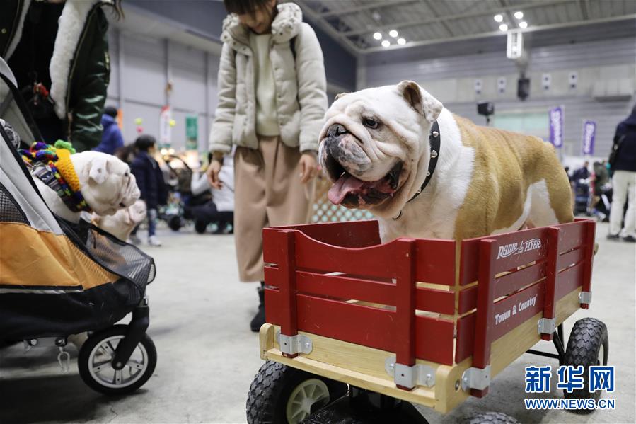 這是1月13日在日本橫濱“Pet博2019”銷售寵物用具的展位上拍攝的一只寵物犬。 1月12日至14日,名為“Pet博2019”的大規(guī)模寵物及寵物用品展覽會在日本橫濱舉辦,眾多市民攜自己的寵物來會場購物、交流、參加互動活動。除橫濱之外,“Pet博2019”還會陸續(xù)在大阪、名古屋等地舉行。 新華社記者 杜瀟逸 攝