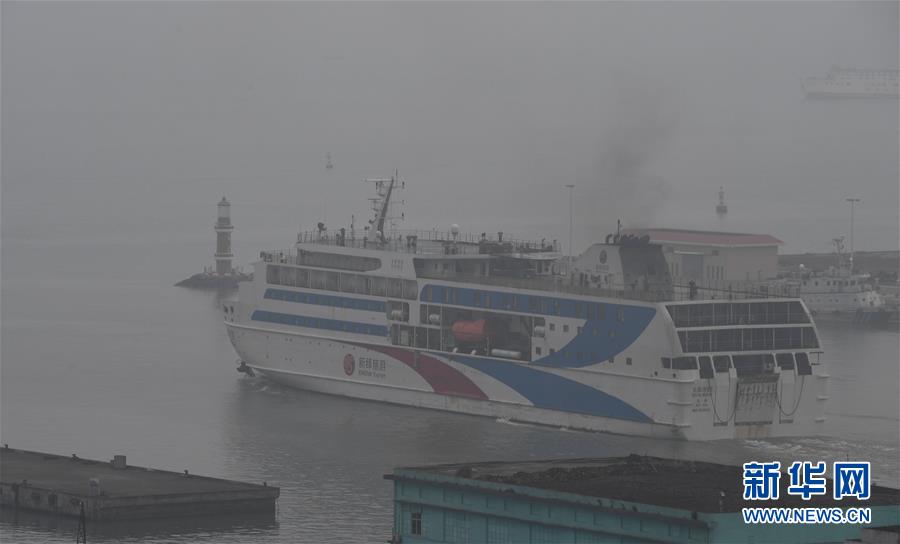 1月13日,一艘客滾船從??谛阌⒏垴偝?。 新華社記者楊冠宇攝