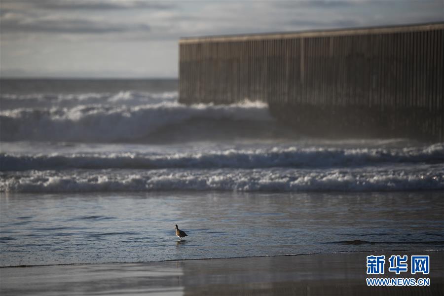在墨西哥邊境城市蒂華納的海岸邊,一堵數(shù)米高的邊境隔離墻從海水中豎起,向東延伸,不見盡頭。這里便是美國和墨西哥邊境隔離墻的起點,曾經(jīng)有不少來自拉美的移民選擇在夜間從這里游過邊境墻進入美國,但由于風大浪急,十分兇險,不少人丟了性命。 新華社記者 辛悅衛(wèi) 攝