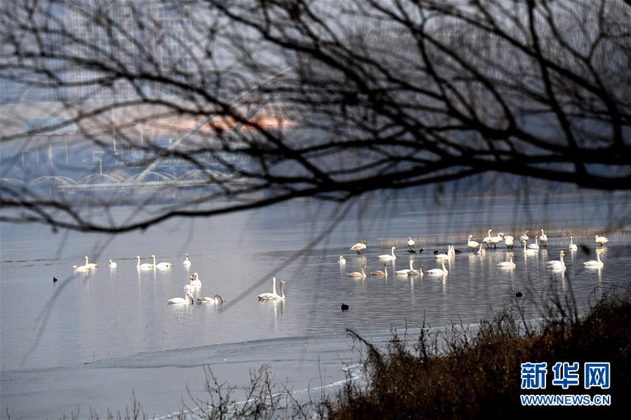 1月4日在三門峽黃河濕地拍攝的白天鵝。  新華社記者王丁攝