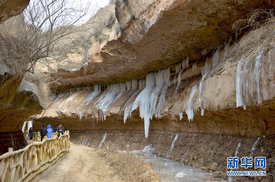 黑老鍋景區(qū)位于甘肅省慶陽市顯勝鄉(xiāng),峽谷長千余米,每年冬季泉水結(jié)成冰瀑,景色壯觀,吸引眾多游客前來游玩。 新華社記者李笑攝