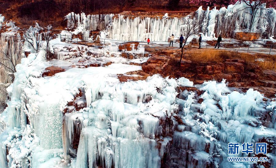 1月12日,游客在涉縣太行五指山景區(qū)內(nèi)游覽。新華社記者王曉攝