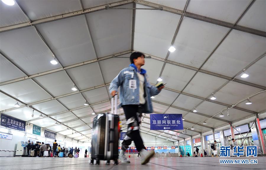 1月15日,一名旅客在廣州火車站售票大廳外臨時(shí)搭建的互聯(lián)網(wǎng)購(gòu)票取票大棚內(nèi)取票。 為適應(yīng)互聯(lián)網(wǎng)購(gòu)票旅客比重持續(xù)上升趨勢(shì),廣州火車站在籌備2019年春運(yùn)票務(wù)業(yè)務(wù)時(shí),優(yōu)化互聯(lián)網(wǎng)購(gòu)票取票和退改簽業(yè)務(wù)辦理流程設(shè)計(jì),提升效率,方便旅客出行。 新華社記者劉大偉攝