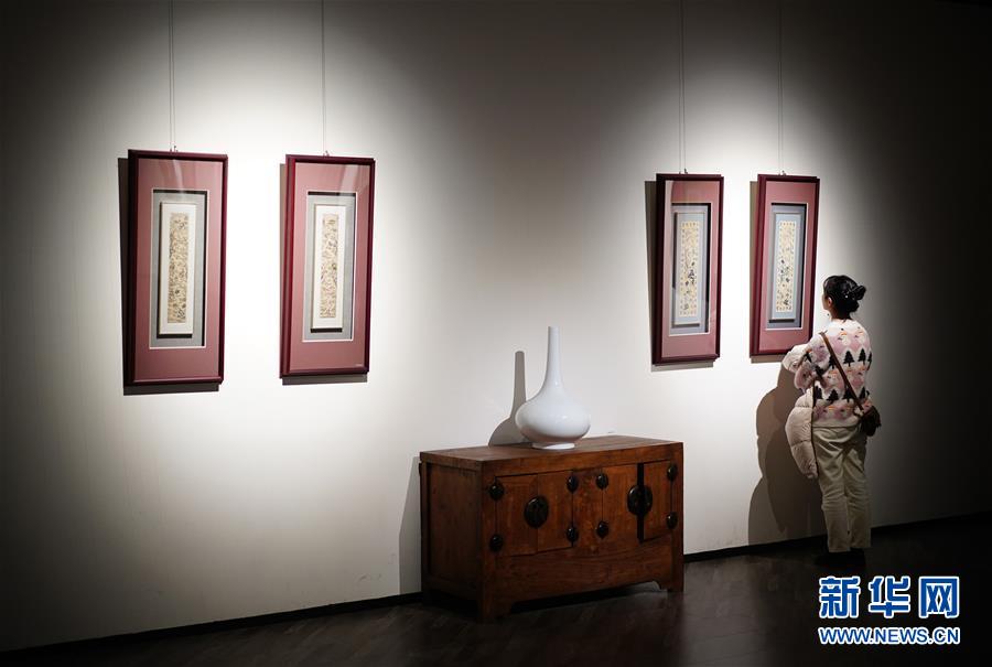 1月14日,一名讀者在西安市未央?yún)^(qū)一家書城的藝術(shù)品售賣區(qū)參觀。