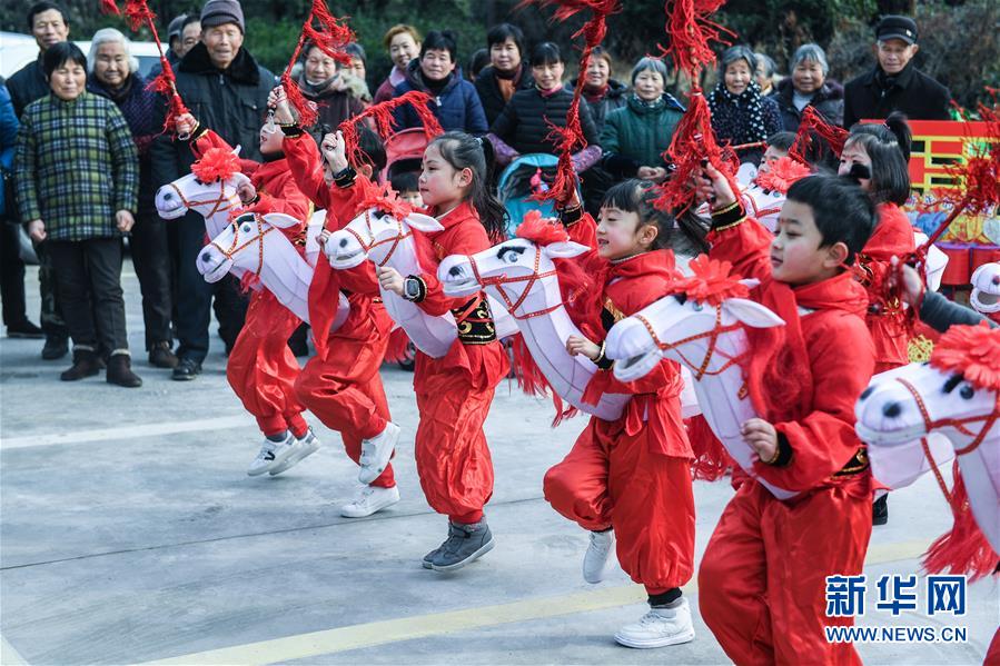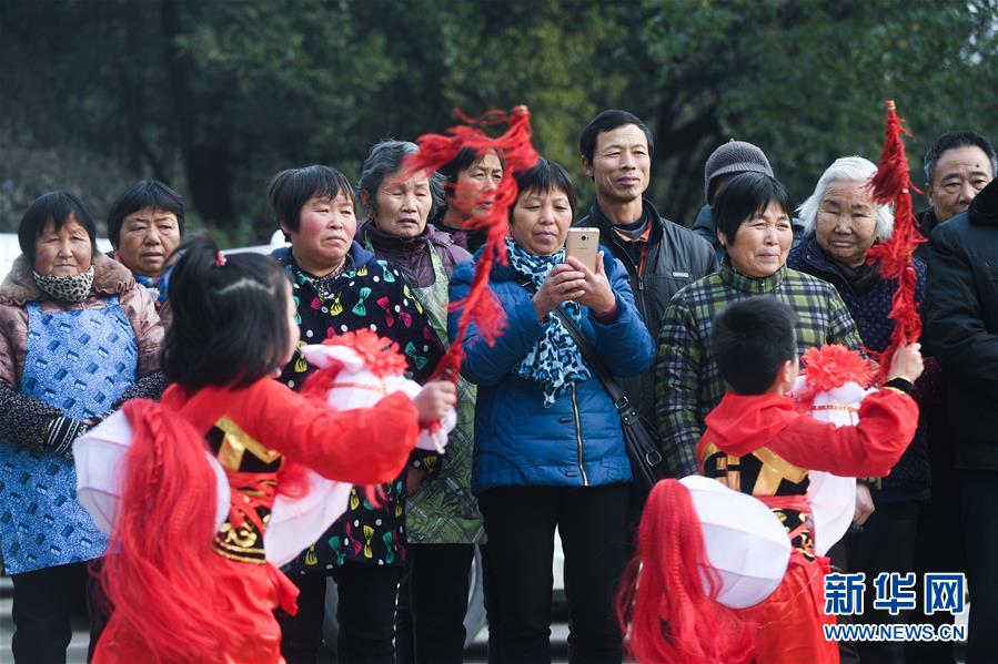 1月16日,新塘村村民觀看傳統(tǒng)非遺項目——下箬馬燈。下箬馬燈是發(fā)源于長興縣的民間舞蹈,距今已有1000多年歷史。 臨近春節(jié),浙江省長興縣開發(fā)區(qū)中心幼兒園的老師和孩子們來到長興縣太湖街道下屬的新塘村,為村民表演文藝節(jié)目,用喜慶的傳統(tǒng)舞蹈營造節(jié)日氣氛。另外孩子們還用紙盒、瓶子、彩色包裝紙等廢舊物品制作了環(huán)?;簦徒o村民,倡導(dǎo)低碳環(huán)保的節(jié)日新風(fēng)。 新華社記者 徐昱 攝