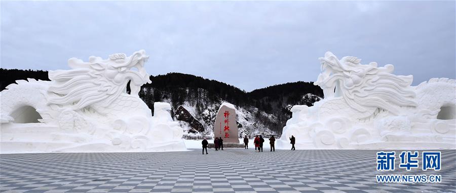1月24日,在黑龍江省漠河市北極村,游客在神州北極廣場(chǎng)游玩。新華社記者王毓國(guó)攝