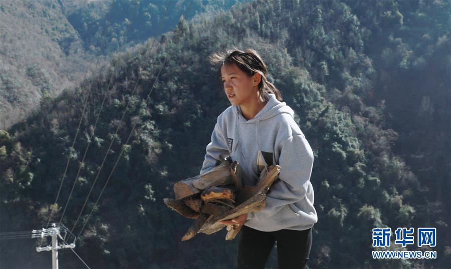 1月24日,在云南省蘭坪縣,褚福妹搬運柴火準備燒飯。