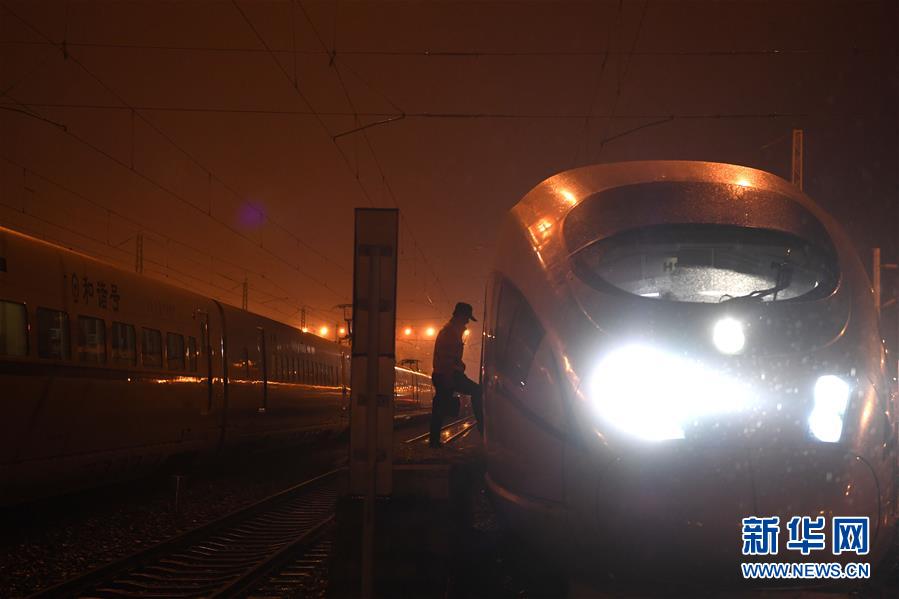 1月29日,王瑞在合肥南動車運用所進行動車組連掛作業(yè)。新華社記者劉軍喜攝