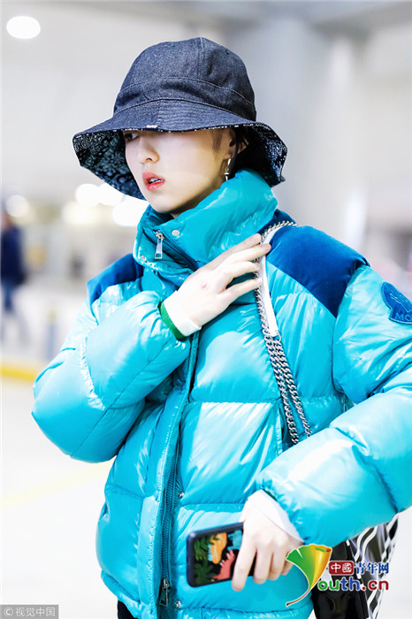 2019年1月31日,上海,張子楓現(xiàn)身機(jī)場。她身穿藍(lán)色羽絨服,戴著大檐帽也難擋好氣色,雪膚紅唇妝容精致展現(xiàn)女人味。