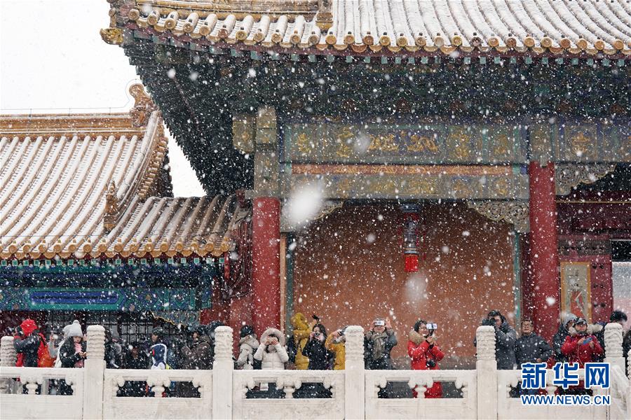2月14日,游客在雪中游覽北京故宮。 當日,北京降雪,大批游人來到故宮游覽賞雪。 新華社記者 鞠煥宗 攝