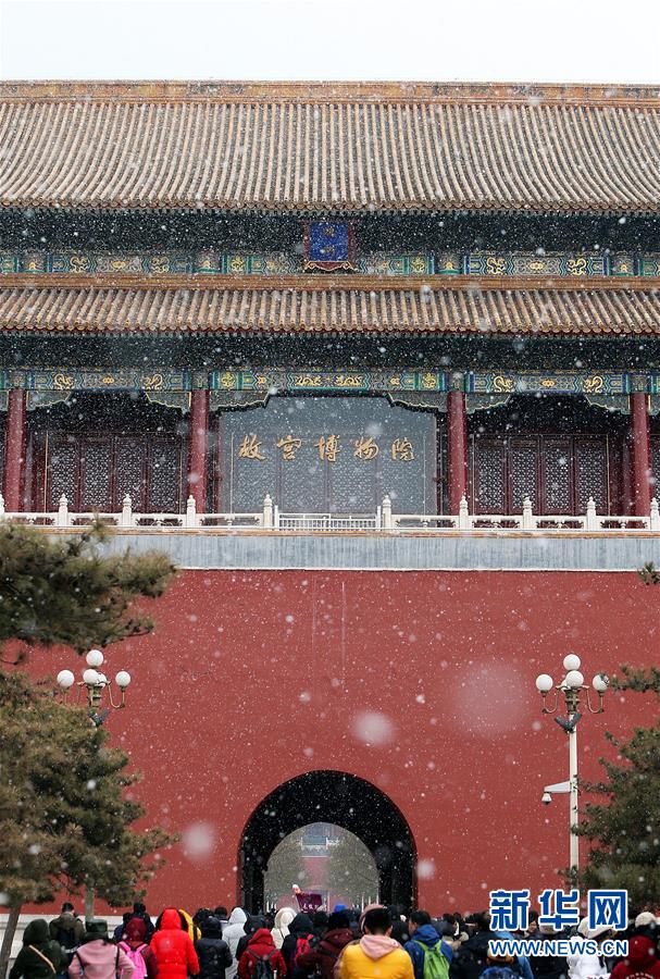 2月14日,游客在雪中游覽北京故宮。 當(dāng)日,北京降雪,大批游人來到故宮游覽賞雪。 新華社記者 張傳奇 攝