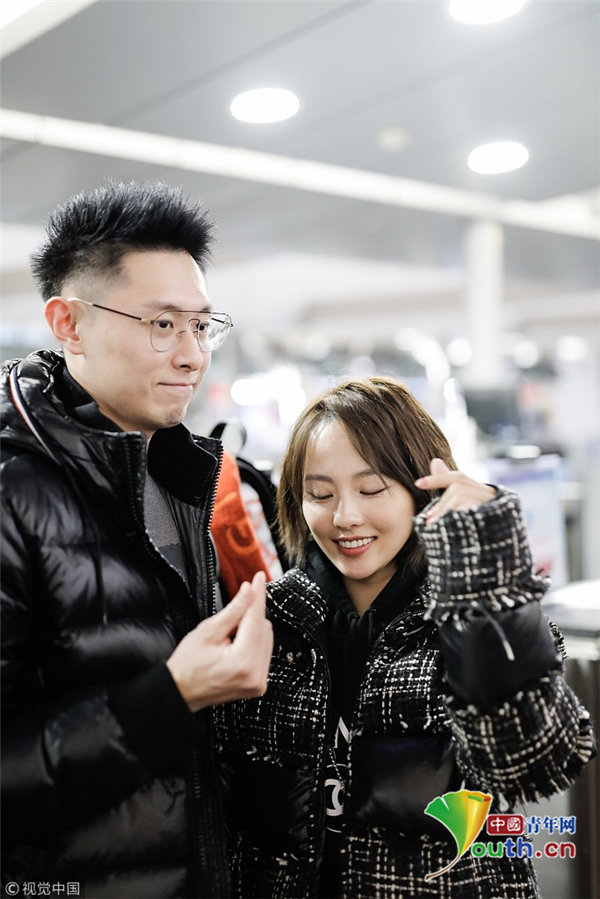 2月20日,上海,張嘉倪、買超深夜現(xiàn)身機(jī)場(chǎng),啟程前往2019秋冬米蘭時(shí)裝周。張嘉倪依偎在老公懷里十分小女生,兩人對(duì)鏡頭比心狂撒狗糧,與粉絲親切合影簽名,十分接地氣。