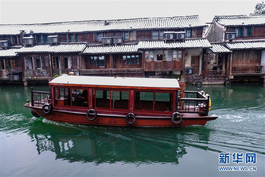 12月9日,游船行駛在烏鎮(zhèn)景區(qū)的河道內。 受冷空氣影響,浙江省桐鄉(xiāng)市迎來大范圍降雪,千年古鎮(zhèn)烏鎮(zhèn)被厚厚的白雪覆蓋。小橋流水、白墻黑瓦的江南水鄉(xiāng)古鎮(zhèn),呈現(xiàn)出冬日雪鄉(xiāng)的獨特韻味,吸引各地游客前來觀賞。 新華社記者 徐昱 攝