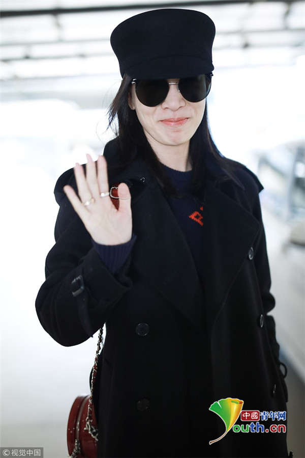 2019年2月28日,上海,佘詩曼現(xiàn)身機(jī)場。她頭戴禮帽,身穿黑色大衣走路帶風(fēng)氣場強,單手托腮甜笑瞬間暖人心。