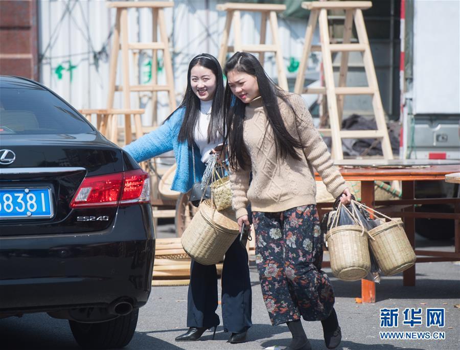 3月12日,人們在福建武夷山“柴頭會”上采購傳統(tǒng)竹制品。