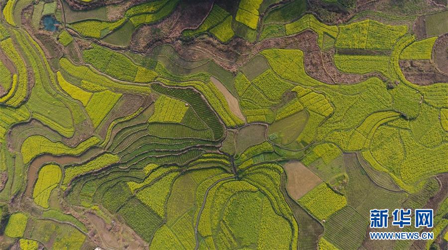 3月20日在貴州錦屏縣敦寨鎮(zhèn)拍攝的春景(無(wú)人機(jī)拍攝)。春分將至,貴州各地成片的油菜花漸次綻放,如同金色的地毯鋪上云貴高原。 新華社記者 歐東衢 攝