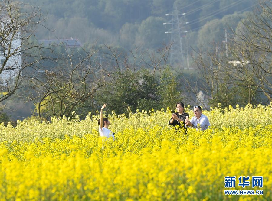 3月19日,游人在下涯鎮(zhèn)油菜花海中留影。近日,浙江省建德市下涯鎮(zhèn)油菜花盛開(kāi),吸引不少游客前來(lái)踏春。 新華社記者翁忻旸攝