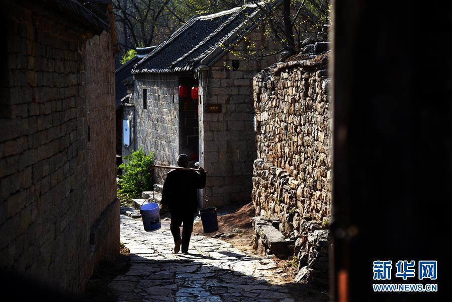 3月31日,村民挑擔(dān)走在上九山村的一條小道上。山東省鄒城市石墻鎮(zhèn)上九山村始建于宋代,是一座依山而建的石頭村,有明清建筑風(fēng)格的古民居300余套,古樸傳統(tǒng)的村貌吸引眾多游客。2019年1月,上九山村入選第七批中國(guó)歷史文化名村。 新華社記者 王凱 攝