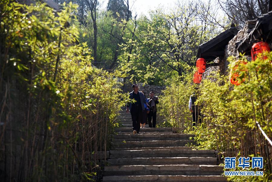 游客在山東省鄒城市石墻鎮(zhèn)上九山景區(qū)內(nèi)游覽(3月31日攝)。新華社記者王凱攝