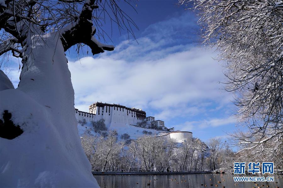 12月19日拍攝的雪后的布達(dá)拉宮。 12月18日,西藏拉薩市迎來今年入冬以來的首場降雪。19日清晨,拉薩雪后初霽,處處銀裝素裹,盡顯雪域高原之美。 新華社記者普布扎西攝