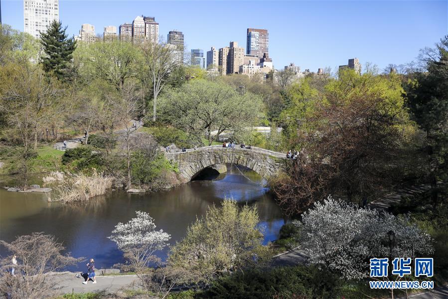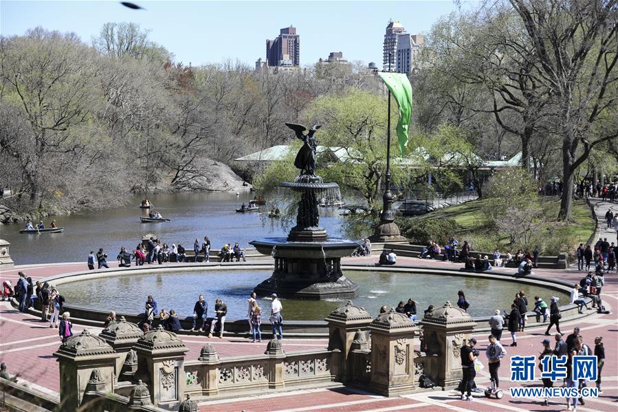 4月16日,人們?cè)诿绹?guó)紐約中央公園游覽。 新華社記者 王迎 攝