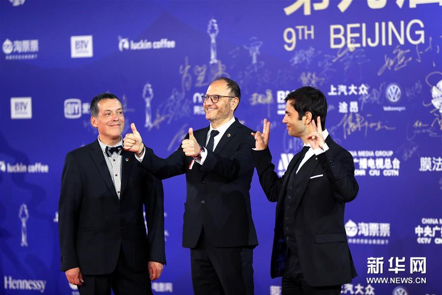 4月20日,電影《侍者》劇組成員亮相閉幕紅毯。 當日,第九屆北京國際電影節(jié)在北京懷柔國家中影數(shù)字制作基地閉幕。 新華社記者 孟永民 攝