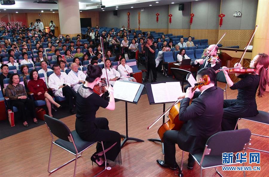 4月25日,上海交響樂團的藝術(shù)家在復旦大學附屬腫瘤醫(yī)院為患者和醫(yī)護人員演奏。 當日,第一場“全城交響·上交為你而來”音樂會在復旦大學附屬腫瘤醫(yī)院報告廳奏響,為患者及醫(yī)護人員獻上一場專屬音樂會。“全城交響·上交為你而來”是上海交響樂團2019年向全上海的機構(gòu)及個人開放的公益演出項目。 新華社記者 任瓏 攝