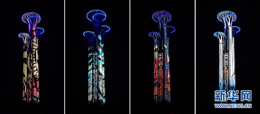 4月26日,北京中軸線(xiàn)上演“空間光影秀”(拼版照片)。 新華社記者 李賀 攝