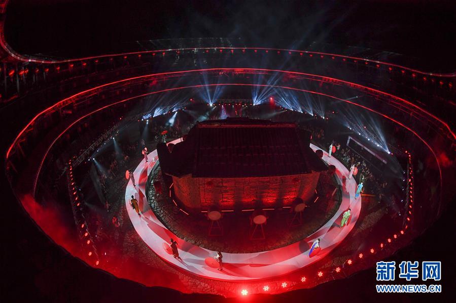 4月27日,表演結(jié)束后,模特在向觀眾致意。 當(dāng)日,土樓光語(yǔ)國(guó)際時(shí)尚大秀在福建省南靖縣的土樓裕昌樓內(nèi)舉行。這場(chǎng)融匯文化、時(shí)尚與旅游元素的大秀,通過(guò)傳統(tǒng)與時(shí)尚的有機(jī)融合,展現(xiàn)南靖土樓及文化的魅力和風(fēng)采。 新華社記者魏培全攝