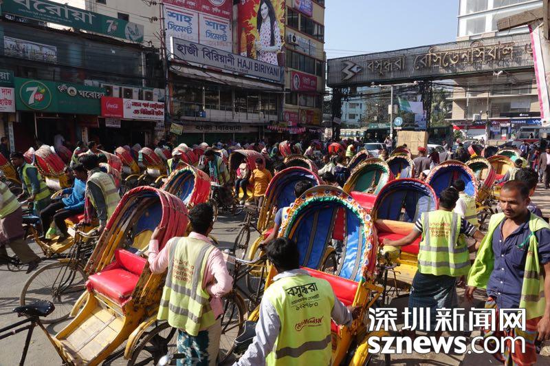 首都達(dá)卡匯聚了1100多萬(wàn)人,生存與忙碌是這個(gè)城市的主調(diào),鮮艷的色彩,比如花里胡哨的三輪車(chē)和婦女大紅大綠的服裝只是其裝扮而已。李仁奇攝