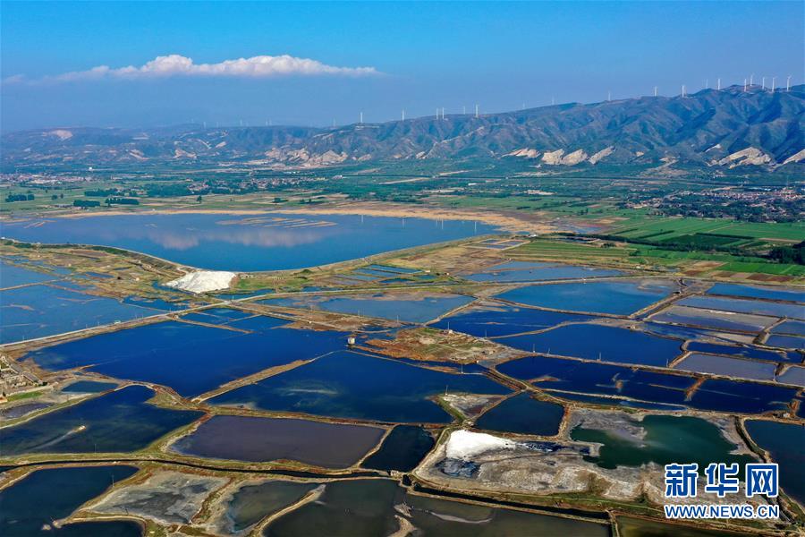 這是4月23日無人機(jī)拍攝的山西運(yùn)城鹽湖。新華社記者 曹陽 攝