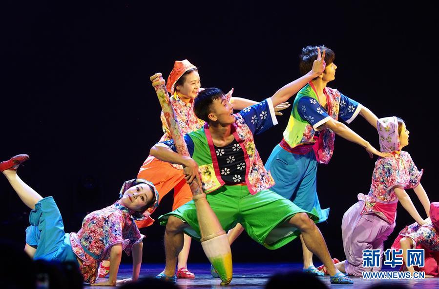 5月16日,在第十八屆群星獎決賽舞蹈類作品比賽中,演員在表演《打扁擔》。 當日,作為第十二屆中國藝術節(jié)的重要內容,第十八屆群星獎決賽在上海東方藝術中心啟動。84個入圍決賽作品將按照舞蹈、音樂、戲劇、曲藝4個門類進行7場比賽,最終評出20個獲獎作品。 新華社記者 任瓏 攝