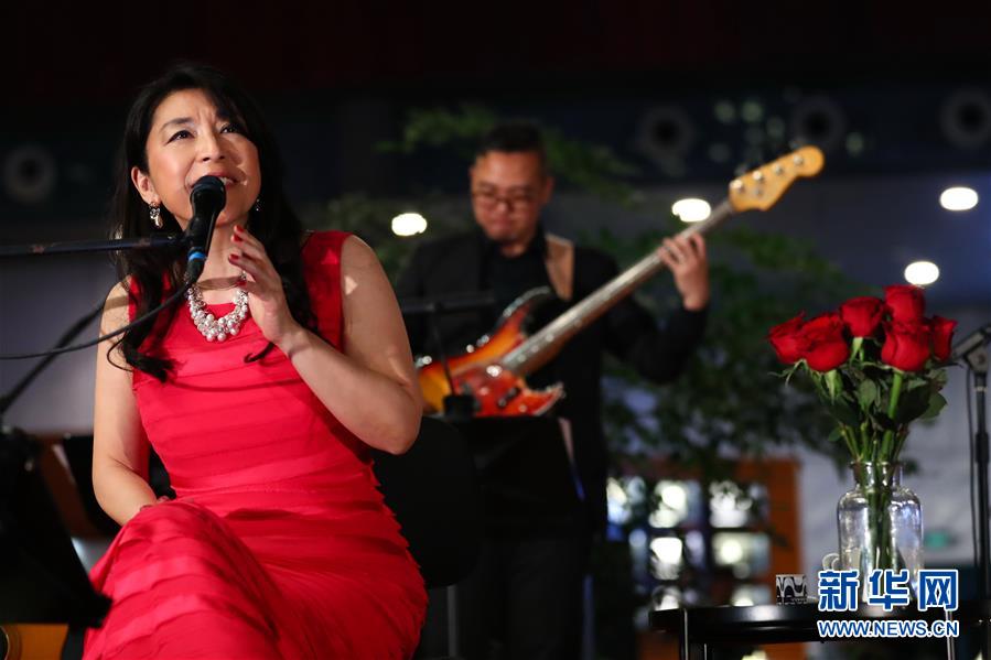 5月18日晚,歌手小野麗莎在北京國(guó)家大劇院“午夜玫瑰”爵士樂專場(chǎng)音樂會(huì)上演唱。 5月18日晚,作為亞洲文化展演活動(dòng)的演出之一,著名爵士歌手小野麗莎攜樂團(tuán)首次登臺(tái)國(guó)家大劇院,亮相“午夜玫瑰”爵士樂專場(chǎng)音樂會(huì)。 新華社記者 張玉薇 攝